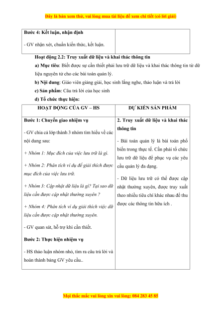Hoạt động 2.2: Truy xuất dữ liệu và khai thác thông tin