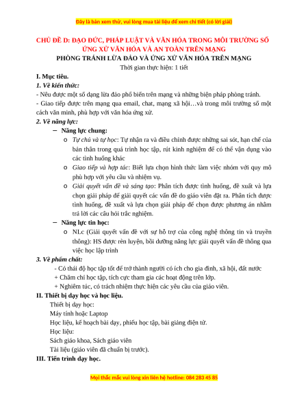 CHỦ ĐỀ D: ĐẠO ĐỨC, PHÁP LUẬT VÀ VĂN HÓA TRONG MÔI TRƯỜNG SỐ