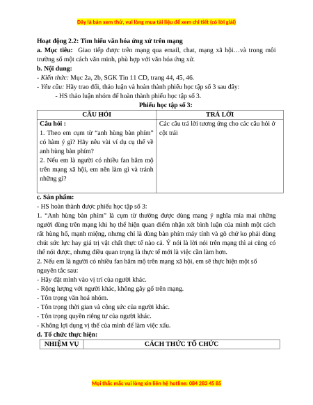 Hoạt động 2.2: Tìm hiểu văn hóa ứng xử trên mạng
