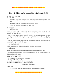 Giáo án Bài 10 Tin học lớp 4 Kết nối tri thức: Phần mềm soạn thảo văn bản