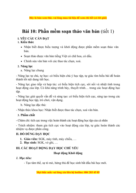 - Nhận thức khoa học: Nhận biết được thao tác chọn, xoá văn bản. 3. Phẩm chất