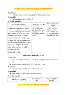 - HS trả lời được câu hỏi SGK_43. 4. Tổ chức thực hiện: Kết quả/sản phẩm GV tổ chức hoạt động Hoạt động của HS học tập