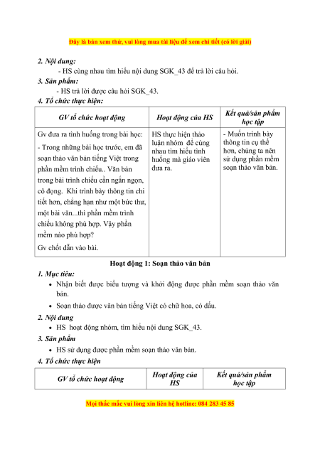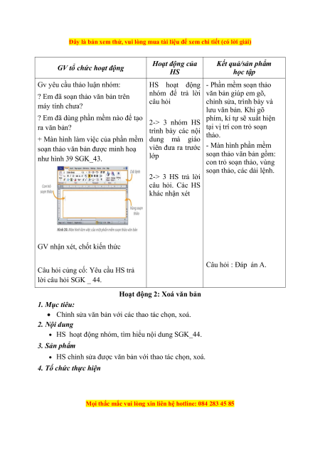 Đây là bản xem thử, vui lòng mua tài liệu để xem chi tiết (có lời giải) Hoạt động của Kết quả/sản phẩm GV tổ chức hoạt động HS học tập