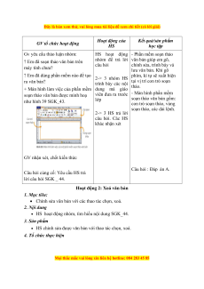 HS chỉnh sửa được văn bản với thao tác chọn, xoá. 4. Tổ chức thực hiện