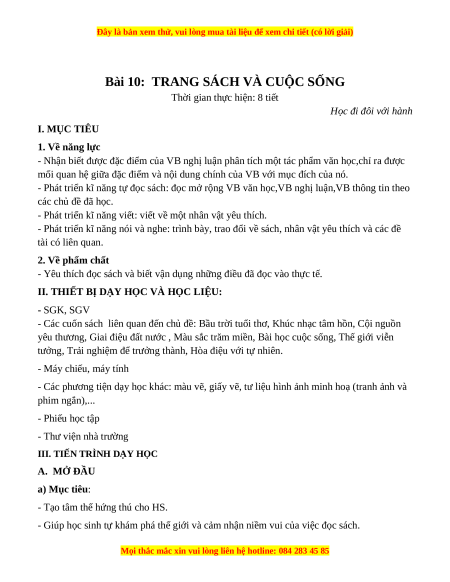 Bài 10: TRANG SÁCH VÀ CUỘC SỐNG