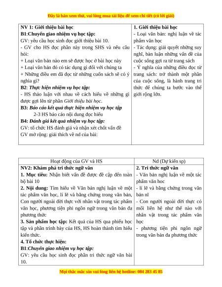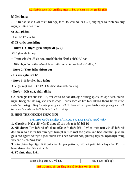 2. Nội dung: Tìm hiểu về nội dung phần giới thiệu bài 10 và tri thức ngữ văn đề hiểu về
