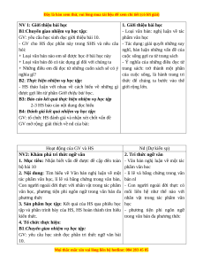 GV mở rộng: giải thích về nd của bài: Hoạt động của GV và HS Nd (Dự kiến sp)