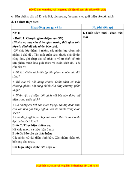 - HS tự đọc phần mục tiêu bh, chọn 1 số cuốn sách văn học, sách khoa học hoặc sách bàn