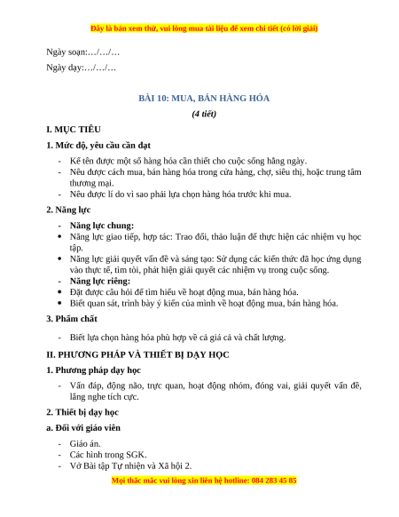 BÀI 10: MUA, BÁN HÀNG HÓA (4 tiết) I. MỤC TIÊU