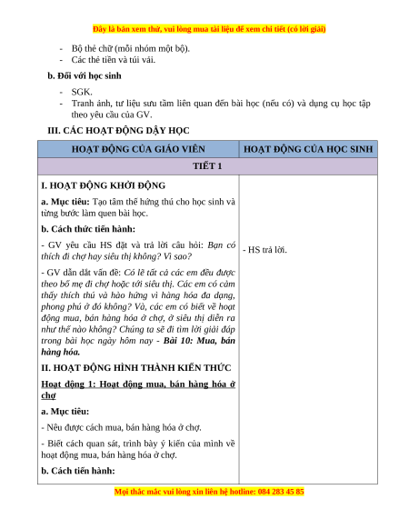 Giáo án Bài 10 Tự nhiên xã hội lớp 2 Cánh diều: Mua, bán hàng hóa