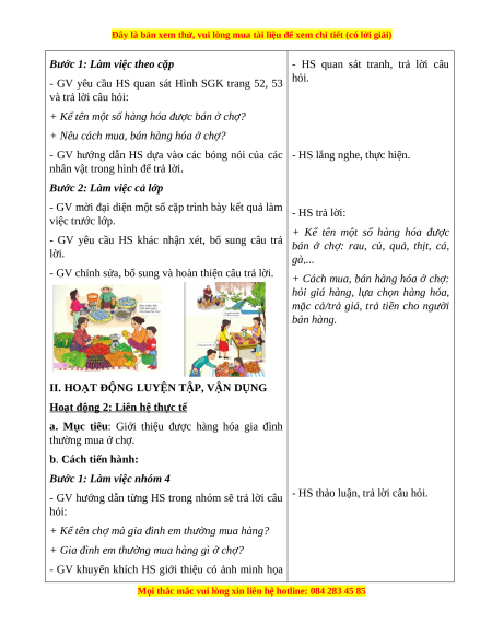 a. Mục tiêu: Giới thiệu được hàng hóa gia đình thường mua ở chợ.
