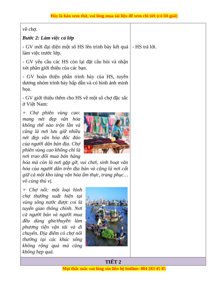 - GV giới thiệu thêm cho HS về một số chợ đặc sắc ở Việt Nam: + Chợ phiên vùng cao: mang nét đẹp văn hóa