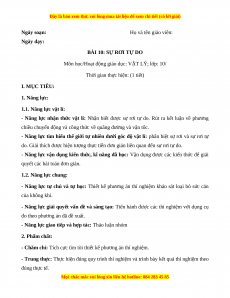 - Năng lực nhận thức vật lí: Nhận biết được sự rơi tự do. Rút ra kết luận về phương