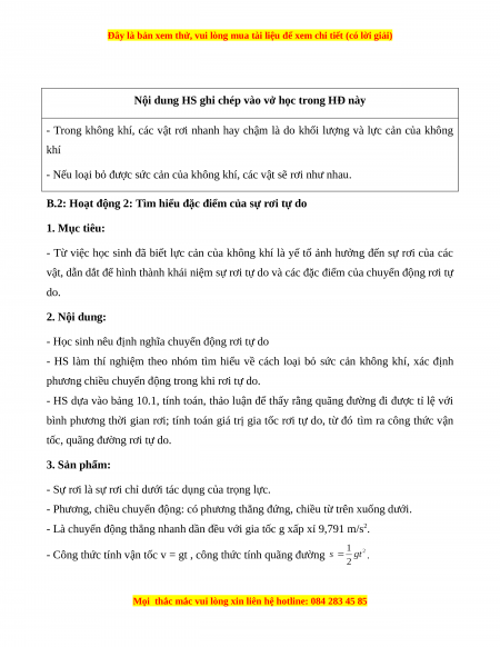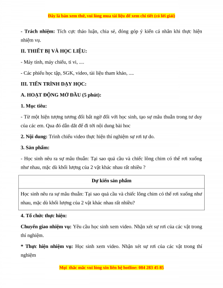 2. Nội dung: Trình chiếu video thực hiện thí nghiệm sự rơi tự do. 3. Sản phẩm:
