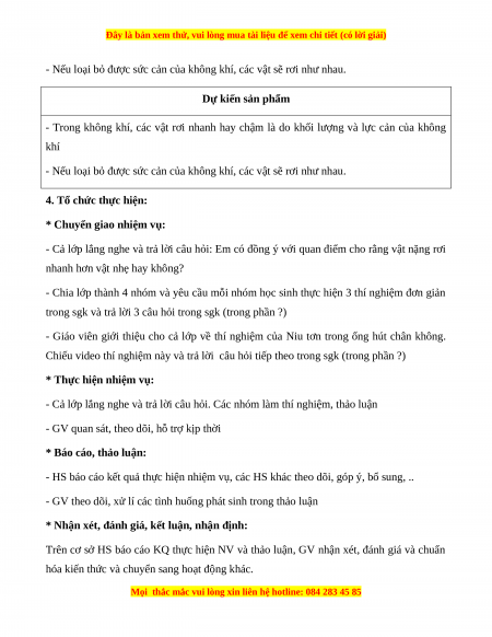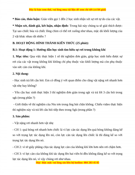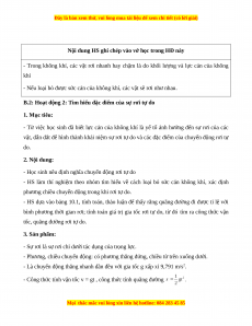 - Từ việc học sinh đã biết lực cản của không khí là yế tố ảnh hưởng đến sự rơi của các