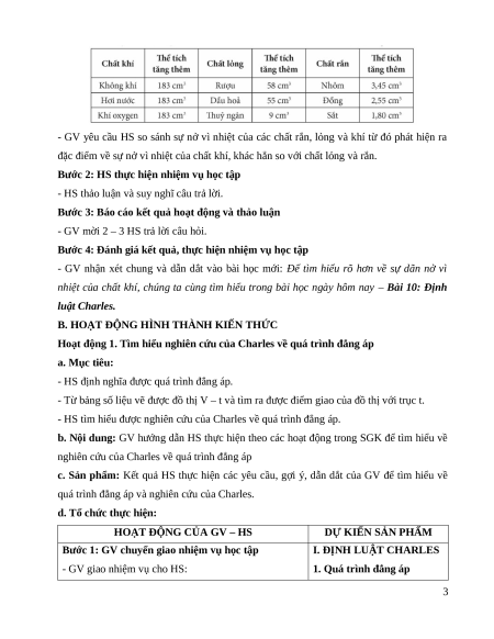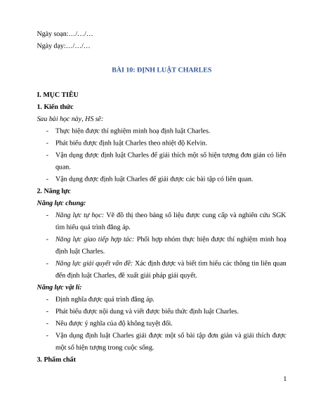BÀI 10: ĐỊNH LUẬT CHARLES I. MỤC TIÊU 1. Kiến thức