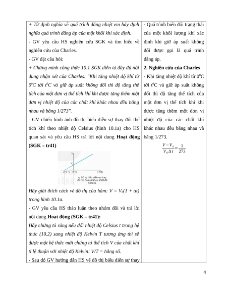 Hoạt động 1. Tìm hiểu nghiên cứu của Charles về quá trình đẳng áp a. Mục tiêu: