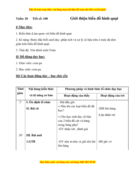 Giáo án Bài 100 Toán lớp 5: Giới thiệu biểu đồ hình quạt