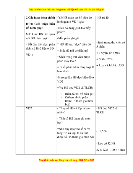 2.Các hoạt động chính -Y/c HS quan sát ký biểu đồ -HS trả lời hình quạt ở VD1(sgk)