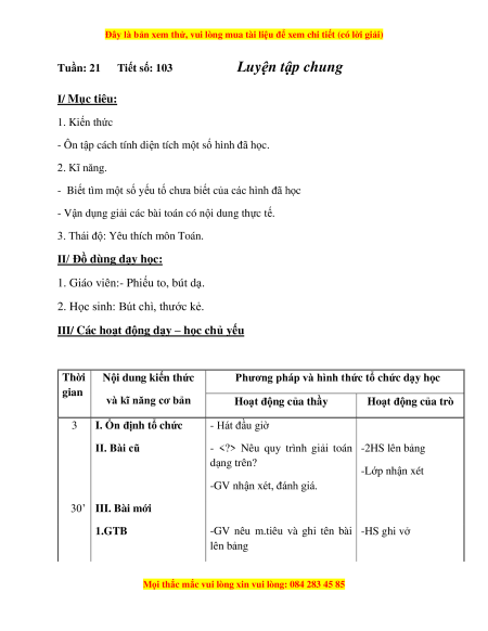 Giáo án Bài 103 Toán lớp 5: Luyện tập chung (Trang 106)