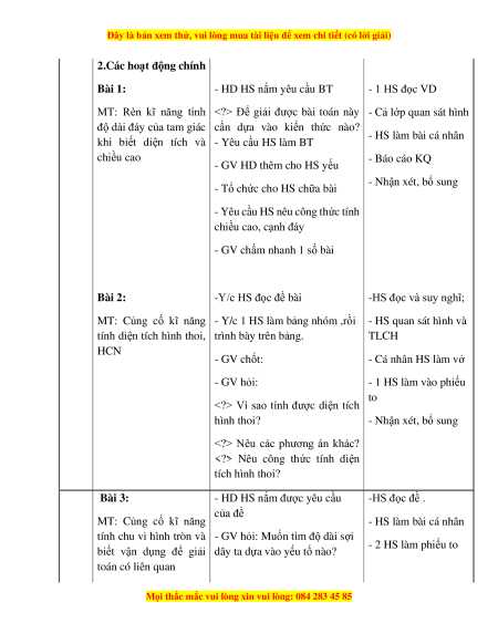 - Ôn tập cách tính diện tích một số hình đã học. 2. Kĩ năng.