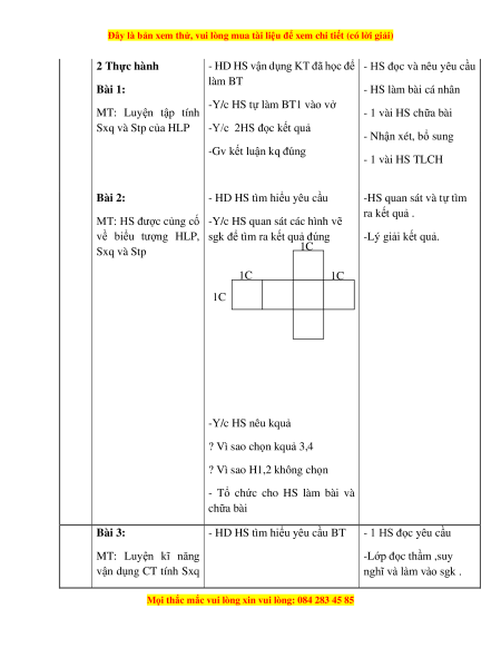 -Vận dụng công thức tính Sxq và Stp của HLp để giải bài tập trong một số trường hợp đơn giản.