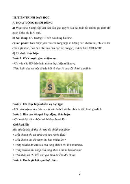 - HS thảo luận nhóm đưa ra một số câu hỏi về thu chi của tài chính gia đình.