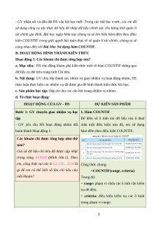 - Sử dụng được hàm đếm theo điều kiện COUNTIF trong giải quyết bài toán