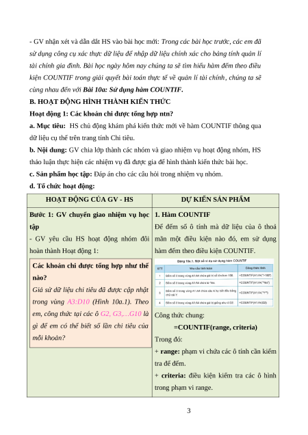 BÀI 10a: SỬ DỤNG HÀM COUNTIF (2 tiết)