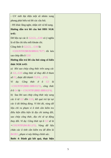 Bước 1: GV chuyển giao nhiệm vụ học 1. Hàm COUNTIF tập