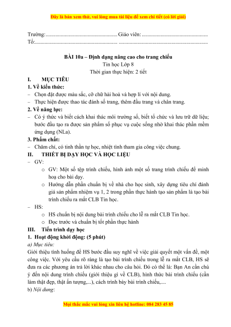 BÀI 10a – Định dạng nâng cao cho trang chiếu Tin học Lớp 8