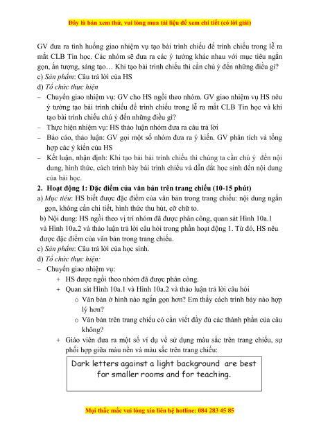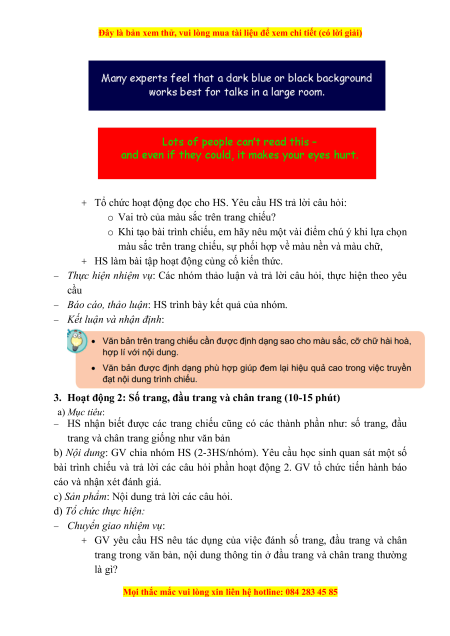 2. Hoạt động 1: Đặc điểm của văn bản trên trang chiếu (10-15 phút)