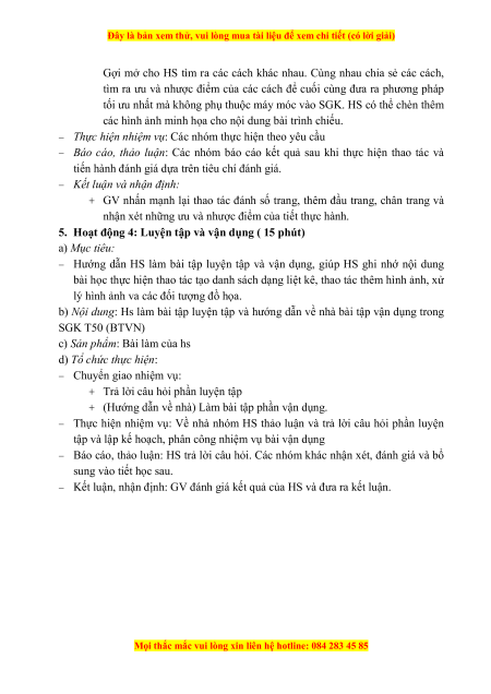 tối ưu nhất mà không phụ thuộc máy móc vào SGK. HS có thể chèn thêm