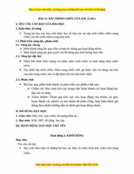 BÀI 11: BÀI TRÌNH CHIẾU CỦA EM (2 tiết )
