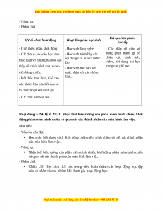 - GV đưa ra yêu cầu học sinh - Học sinh trình bày các dụng phần mềm gì để chiếu các hình ảnh,