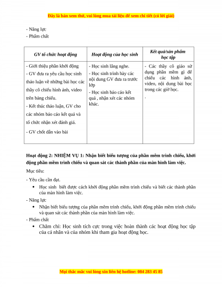 động phần mềm trình chiếu và quan sát các thành phần của màn hình làm việc. Mục tiêu: - Yêu cầu cần đạt.