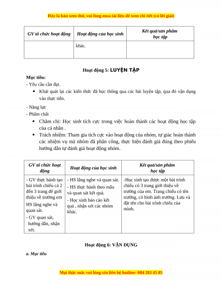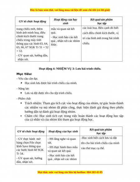 Hoạt động 4: NHIỆM VỤ 3: Lưu bài trình chiếu. Mục tiêu: - Yêu cầu cần đạt.