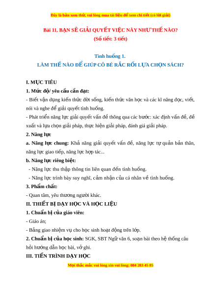 LÀM THẾ NÀO ĐỂ GIÚP CÔ BÉ R C Ắ R I Ố L A Ự CH N Ọ SÁCH? I. M C Ụ TIÊU 1. Mức đ / ộ yêu c u c ầ n đ ầ t ạ : - Bi t ế v n ậ d ng ụ ki n ế th c ứ đ i ờ s ng, ố ki n ế th c ứ văn h c ọ và các kĩ năng đ c, ọ vi t ế , nói và nghe đ gi ể i ả quy t ế tình hu ng. ố - Phát tri n ể năng l c ự gi i ả quy t ế v n ấ đ t ề hông qua các bư c: ớ xác đ nh ị v n ấ đ , ề đề xuất và l a ch ự n ọ gi i ả pháp, th c ự hi n gi ệ i ả pháp, đánh giá gi i ả pháp. 2. Năng l c ự a. Năng l c
