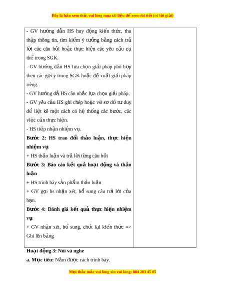 ử vui lòng mua tài li u ệ đ ể xem chi ti t ế (có l i ờ gi i ả ) nhi m ệ vụ + HS nghe và đ t ặ câu h i ỏ liên quan đ n bài ế h c ọ Bư c ớ 3: Báo cáo k t ế quả ho t ạ đ ng ộ và th o ả luận + HS trình bày s n ả ph m ẩ th o ả lu n ậ + GV g i ọ hs nh n