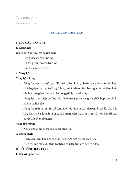 - Chương trình có cấu trúc lặp. - Các lệnh trong Scratch. 2. Năng lực