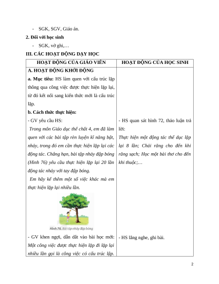 (Hình 76) yêu cầu thực hiện lặp lại 20 lần khi thuộc;…