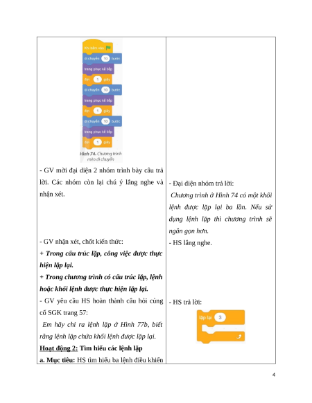 a. Mục tiêu: HS tìm hiểu ba lệnh điều khiển 4