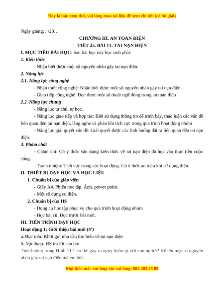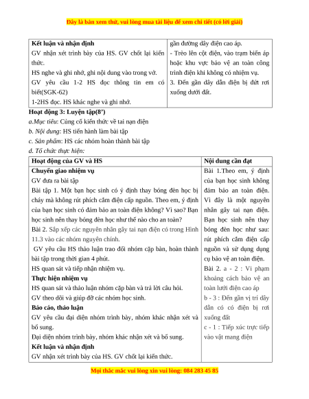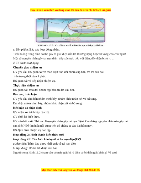 - Năng lực giải quyết vấn đề: Giải quyết được các tình huống đặt ra liên quan đến tai nạn điện. 3. Phẩm chất