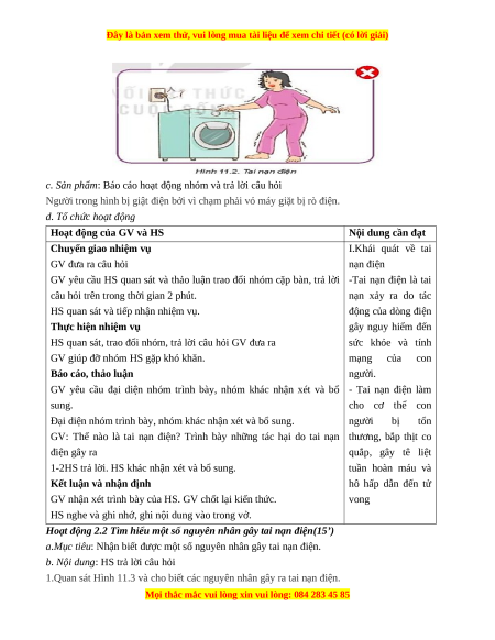 Hoạt động 2.1. Tìm hiểu khái quát về tai nạn điện(15’)