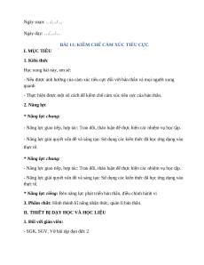 BÀI 11: KIỀM CHẾ CẢM XÚC TIÊU CỰC I. MỤC TIÊU 1. Kiến thức Học xong bài này, em sẽ: