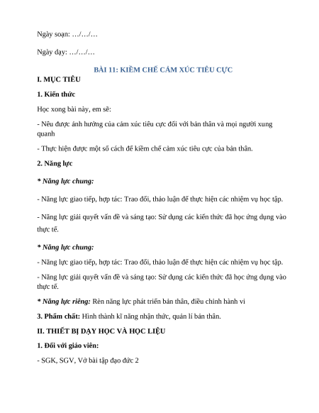 - Thực hiện được một số cách để kiềm chế cảm xúc tiêu cực của bản thân. 2. Năng lực