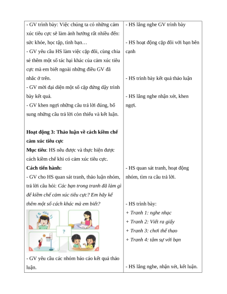 Hoạt động 3: Thảo luận về cách kiềm chế cảm xúc tiêu cực
