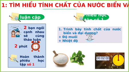 biển và đại dương? sẽ cùng + Độ muối thảo luận + Nhiệt độ 2 phút Hoàn thành phiếu học tập số 1