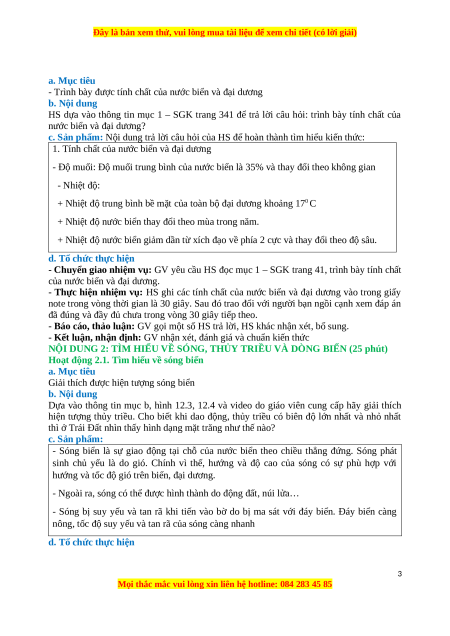 - Trình bày được tính chất của nước biển và đại dương b. Nội dung
