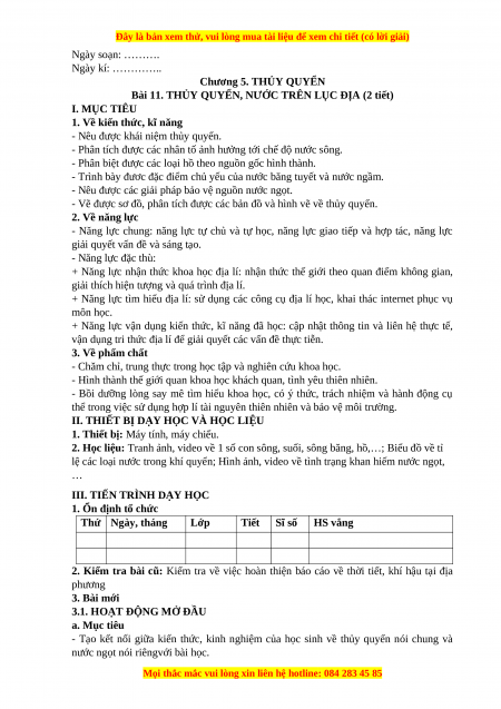 - Vẽ được sơ đồ, phân tích được các bản đồ và hình vẽ về thủy quyển. 2. Về năng lực